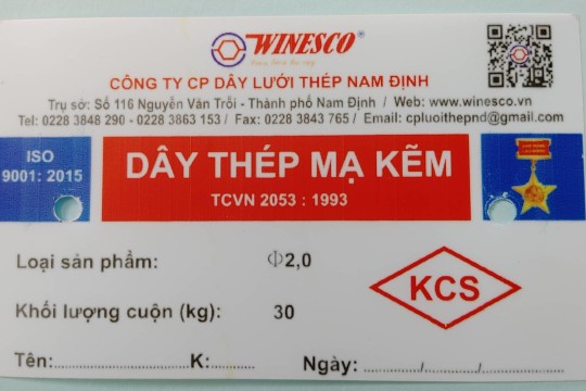 - Trên mỗi cuộn dây chỉ có một tem hàng hóa duy nhất. Trên tem có ghi đầy đủ khối lượng, ngày sản xuất, dấu hiệu kiểm tra chất lượng